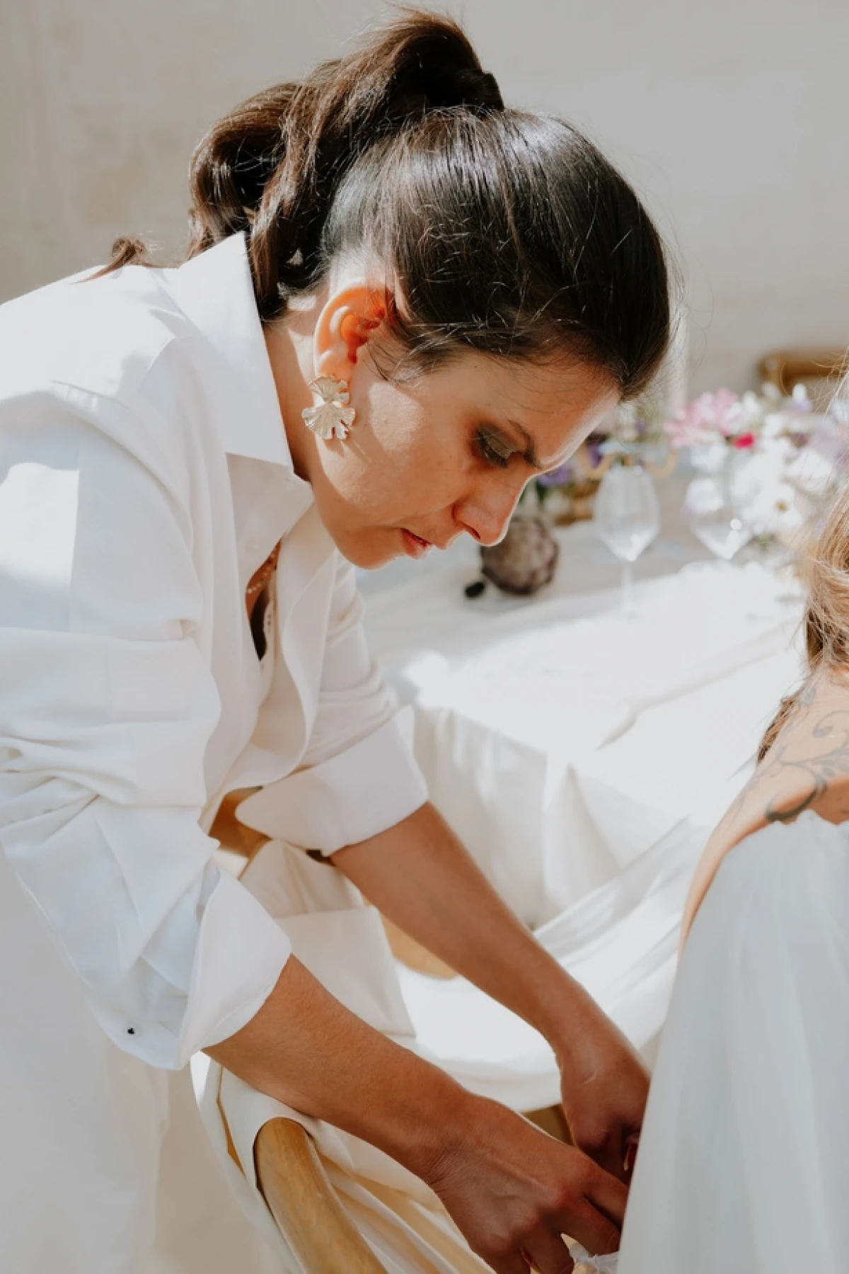 La robe de mariée est pour cette femme artiste une naissance, se construit depuis LA rencontre entre vous & Élodie Groux.